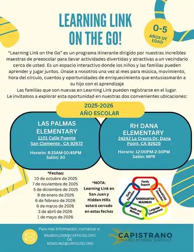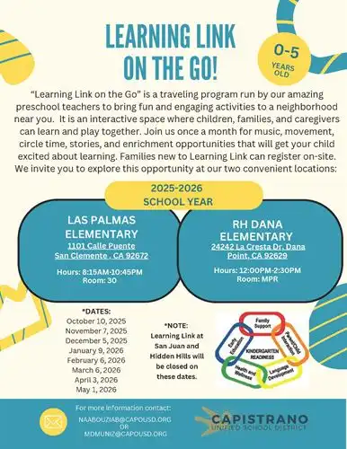 ** Once a month, the Learning Link is closed at Hidden Hills and San Juan in order to operate the "Learning Link on the Go" program at Las Palmas and RH Dana Elementary Schools.